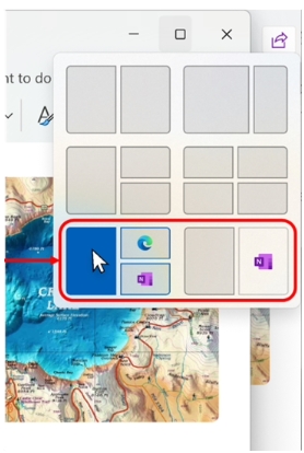 Windows 11 的“Snap Layouts(對齊布局)”中將顯示建議,幫助用戶立即將多個(gè)應(yīng)用窗口對齊在一起。將鼠標(biāo)懸停在應(yīng)用上的最小化或最大化按鈕(注:WIN + Z 快捷鍵)上并啟動布局框時(shí),用戶將看到各種布局選項(xiàng)中顯示的應(yīng)用圖標(biāo),系統(tǒng)將推薦最有效的布局選項(xiàng)。