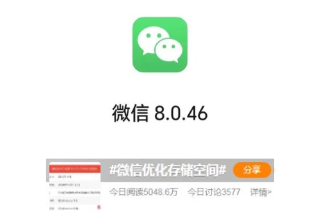 微信更新了,這次版本號(hào)為8.0.46,ios和安卓平臺(tái)都已發(fā)布,多個(gè)相關(guān)話題沖上微博熱搜。