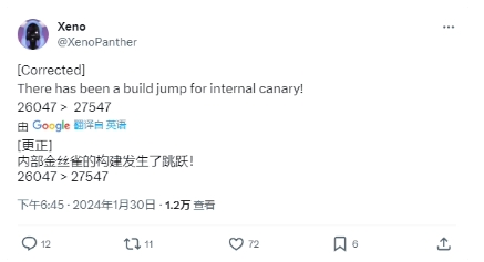 微軟正針對下一代 Windows 版本(傳言稱之為“Win12”或“Win11 2024 更新”)進行測試,目前 Canary 27547 版本已經(jīng)在內(nèi)部完成編譯,相比當前版本跳了一代,這意味著微軟已經(jīng)開始內(nèi)部測試 ge_release (Germanium_release) 版本。