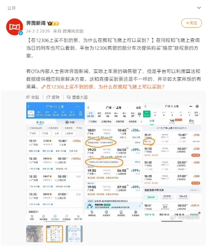 有 OTA 內(nèi)部人士稱,“實(shí)際上車票的確售罄了,但是平臺(tái)可以利用算法和數(shù)據(jù)提供相應(yīng)購(gòu)票解決方案。這和直接買到票還是不一樣的,并非如大家所想的有黑幕。”