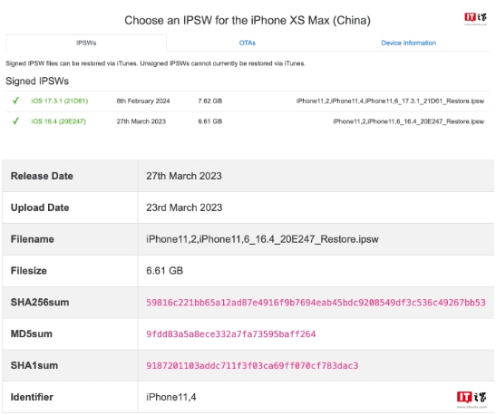 目前蘋果悄然開放了國行 iPhone XS Max 手機的 iOS 16.4 簽名驗證通道,體積 6.61GB,有相關(guān)手機并有降級需求的小伙伴可以從速上車。