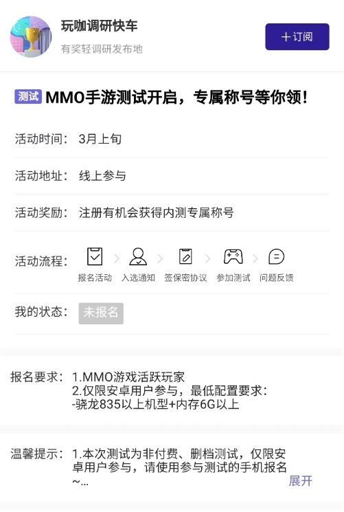 報名要求:MMO 游戲活躍玩家,僅限安卓用戶參與;