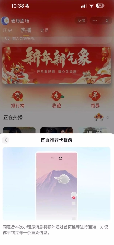 服務(wù)通知推薦短劇小程序的上新通知。