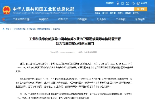 工信部指出,此次獲批國(guó)際碼號(hào)資源后,中國(guó)電信可面向“天通一號(hào)”衛(wèi)星覆蓋區(qū)域的國(guó)際用戶提供手機(jī)直連衛(wèi)星通信服務(wù),還可為海洋運(yùn)輸、遠(yuǎn)洋漁業(yè)、航空救援、旅游科考等多個(gè)領(lǐng)域提供穩(wěn)定可靠的移動(dòng)通信服務(wù)。