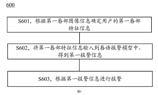 根據(jù)專利摘要,智能駕駛設(shè)備中的報警裝置根據(jù)第一唇部圖像信息確定用戶的第一唇部特征信息,所述第一唇部圖像信息是第一相機獲取的。所述報警裝置將所述第一唇部特征信息輸入到唇語報警模型中,得到第一報警信息。所述報警裝置根據(jù)所述第一報警信息進行報警。