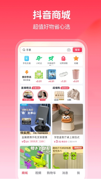 抖音上線了一款名為“抖音商城版”的電商購物類 App,主打“超值好物省心選”,提供商品瀏覽、查找搜索、購買商品或服務(wù)、物流查詢、發(fā)表評價、分享商品等服務(wù)。