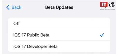 注冊開發(fā)者可以通過打開“設(shè)置”應(yīng)用、轉(zhuǎn)到“軟件更新”部分、點擊“Beta 版更新”選項以及打開 iOS 17 或 iPadOS 17 開發(fā)者測試版來選擇加入測試版,下載和安裝測試版需要與開發(fā)者賬戶關(guān)聯(lián)的 Apple ID。
