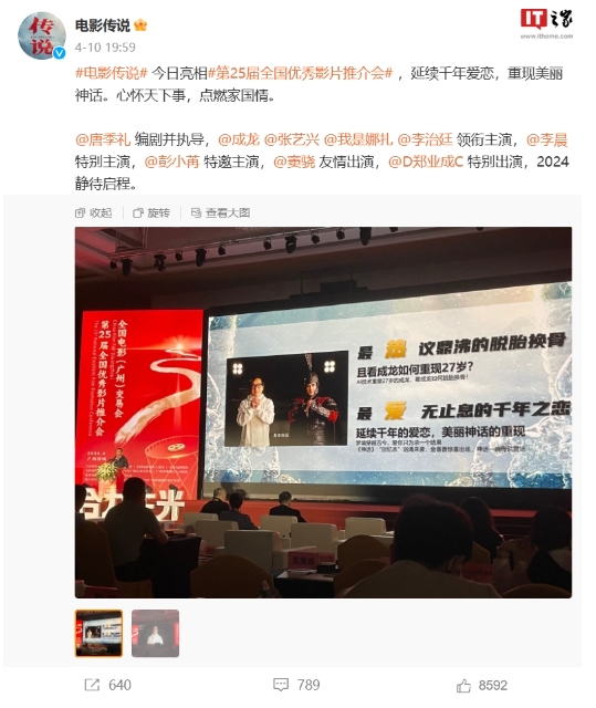 電影《傳說》由于冬擔(dān)任出品人、總制片人,《神話》導(dǎo)演唐季禮編劇并執(zhí)導(dǎo),成龍、張藝興、古力娜扎、李治廷領(lǐng)銜主演,李晨特別主演,彭小苒特邀主演,竇驍友情出演,鄭業(yè)成特別出演。