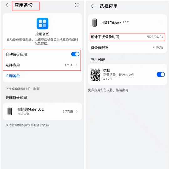 隨著 HarmonyOS 4.2 的到來,華為家庭存儲迎來了應用備份以及微信備份功能,與 HarmonyOS 4.2 及以上版本的手機 / 平板搭配使用可以將微信數(shù)據(jù)備份到 NAS 上,必要時隨時可以恢復微信數(shù)據(jù)。