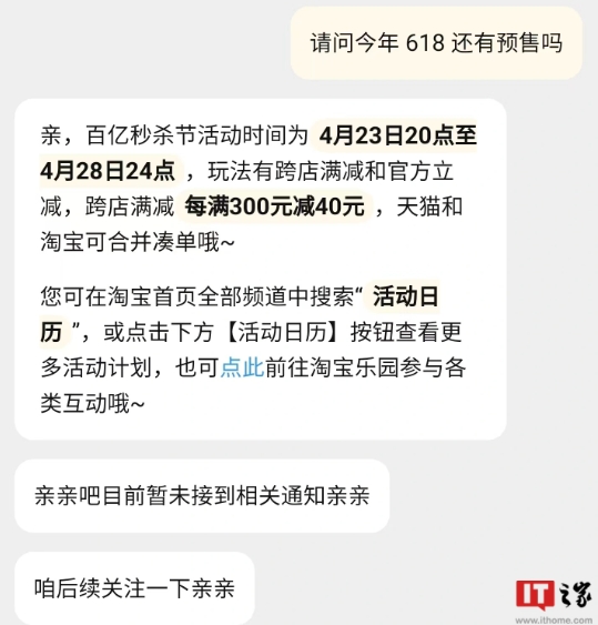 消息稱淘寶、京東今年均取消 618 預(yù)售,5 月下旬現(xiàn)貨開售 08:54:01