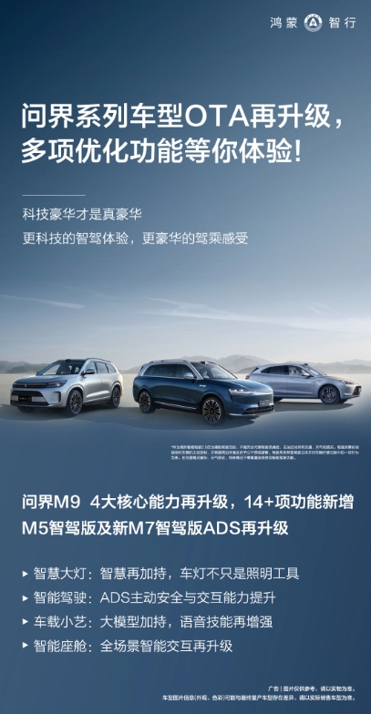 問(wèn)界系列車型迎 OTA 升級(jí):更聰明的小藝、更優(yōu)秀的 ADS 09:45:09