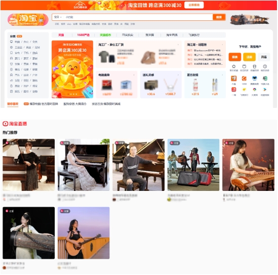 淘寶網(wǎng)頁版官方上線了跨店滿減活動,整體 UI 設(shè)計(jì)更加輕巧簡潔,不過淘寶直播界面還較為簡陋,只展示幾個(gè)推薦直播信息,無法自行查找。