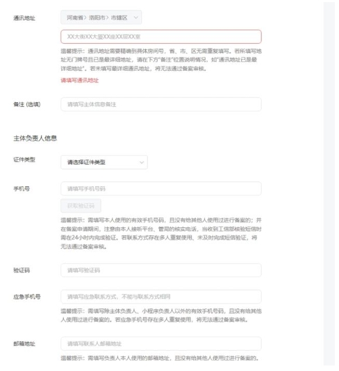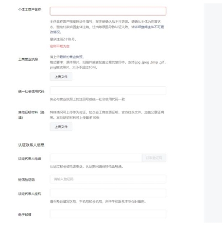 3、錄入營業(yè)執(zhí)照登記的地址、營業(yè)執(zhí)照的法人信息,包含2個手機號和1個郵箱賬號。