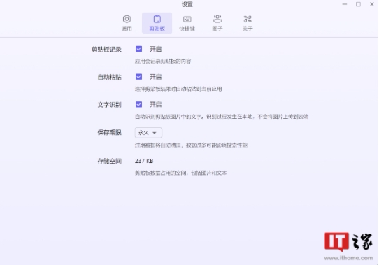 小微助手支持剪貼板設置,可記錄剪貼板內(nèi)容,支持自動粘貼、圖片文字識別等功能,支持數(shù)據(jù)保存期限時間自定義和存儲空間占用顯示。
