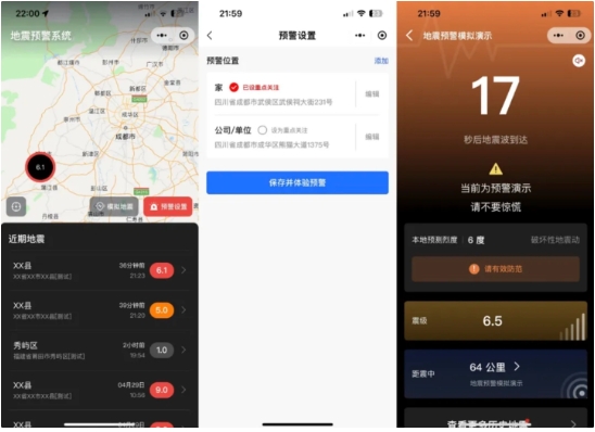 目前相關(guān)預(yù)警功能僅支持四川省(四川及周?chē)?50 公里的地震信息),用戶(hù)可以在微信搜索“四川地震臺(tái)”公眾號(hào),關(guān)注公眾號(hào)后即可開(kāi)啟地震預(yù)警;對(duì)于 QQ 平臺(tái),用戶(hù)可以搜索并關(guān)注“QQ 全城助力”公眾號(hào),之后可以設(shè)置預(yù)警位置及烈度范圍。