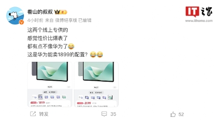 博主 @看山的叔叔 表示,華為 MatePad 11.5S 靈動(dòng)款平板的兩個(gè)配置(8GB+128GB、8GB+256GB)專供線上渠道,感覺(jué)“性價(jià)比爆表,都有點(diǎn)不像華為了”。