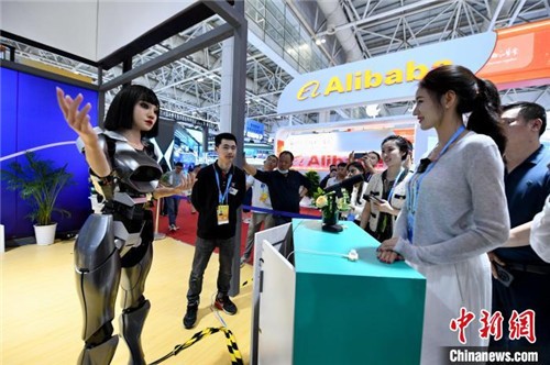 在展館內(nèi),一名正在為參觀者提供咨詢服務(wù)的“美女”格外吸睛。她轉(zhuǎn)動著一雙美麗的大眼睛,擺動著手臂,還擁有一頭柔順的頭發(fā)和一身光滑的肌膚,涂著指甲油,穿著高跟鞋,身材高挑。
