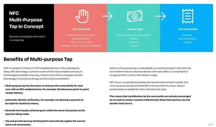 NFC 論壇表示這種多功能方式也引發(fā)了一些隱私問題,意味著顧客不必再在收銀臺旁的單獨平板電腦上輸入詳細信息來獲取積分,但該功能也可能被用來觸發(fā)特定的、有針對性的營銷傳播。