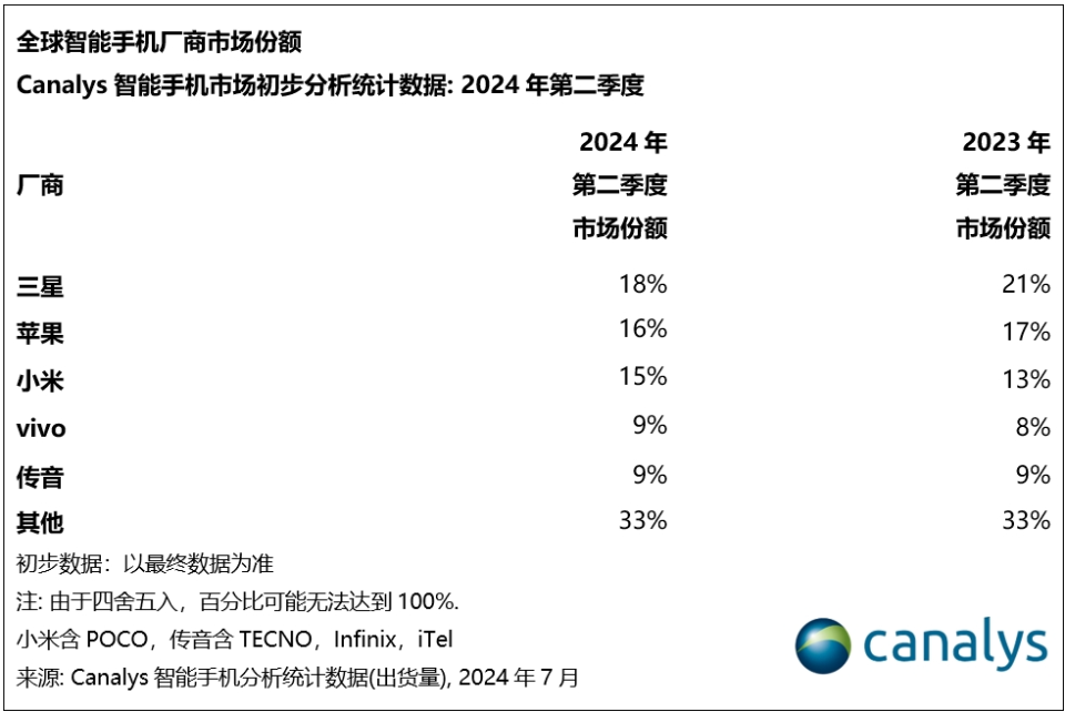 Canalys:2024 年 Q2 全球智能手機(jī)市場同比增長 12% 09:30:04