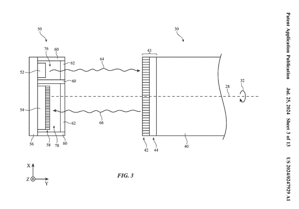 蘋果的這項(xiàng)專利名為《帶有光學(xué)角度傳感器的電動設(shè)備》,重點(diǎn)改善折疊設(shè)備中的角度傳感器,從而讓系統(tǒng)靈活根據(jù)設(shè)備狀態(tài)調(diào)整 UI。