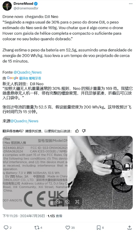IT之家 7 月 30 日消息,消息源 @dronemoodbr 于 7 月 26 日在 X 平臺發(fā)布推文,分享了大疆 Neo 無人機的相關信息。