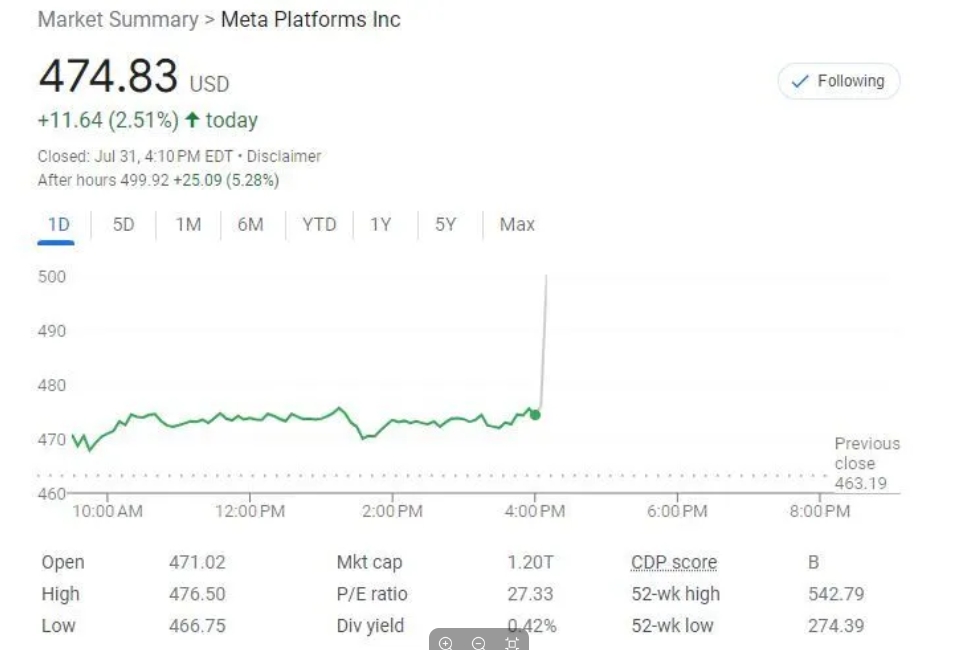 由于二季度Meta的營收和盈利均高于預(yù)期,沒有再上調(diào)全年資本支出的區(qū)間上限,對全年總支出的指引也沒有再度上修,而且對三季度收入的指引區(qū)間中點超出市場預(yù)期,盤后漲超5%。