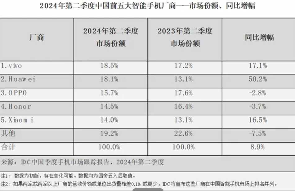 近日,國際數(shù)據(jù)公司(IDC)發(fā)布了最新手機(jī)季度跟蹤數(shù)據(jù),報(bào)告顯示,2024年第二季度,中國智能手機(jī)市場出貨量達(dá)到7158萬臺(tái),同比增長8.9%,延續(xù)增長勢頭。其中,在vivo、OPPO等廠商的推動(dòng)下,Android市場同比增長11.1%。