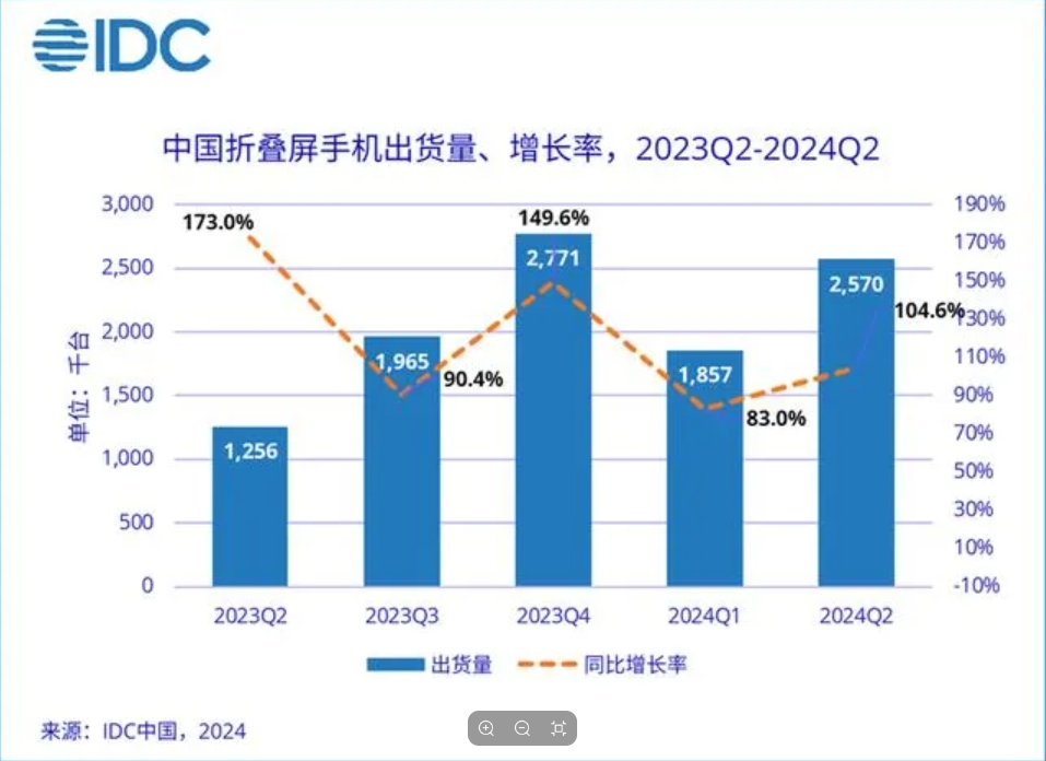 2024 年第二季度,中國折疊屏手機(jī)市場持續(xù)升溫,出貨量達(dá)到257萬臺(tái),同比實(shí)現(xiàn)三位數(shù)增長。