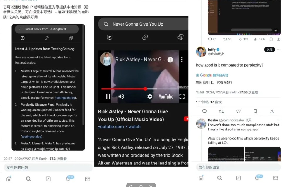 在評(píng)論區(qū)有網(wǎng)友發(fā)問(wèn)“和perplexxity相比,它有多好?”kesku演示了一個(gè)案例,即分別問(wèn)SearchGPT和perplexxity“誰(shuí)是Kesku”,前者能做到而后者一直失敗,因此他說(shuō)雖然還沒(méi)有做特別的事,但相比之下目前喜歡SearchGPT。