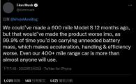 據外媒報道,美國當地時間周三,電動汽車制造商特斯拉首席執(zhí)行官埃隆·馬斯克(Elon Musk)回復粉絲推文,聲稱電動汽車續(xù)航里程太高沒意