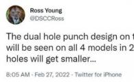 顯示器行業(yè)分析師Ross Young通過(guò)Twitter表示,iPhone Pro機(jī)型的雙打孔設(shè)計(jì)將在2023年的4款機(jī)型上全部出現(xiàn)?! 「鶕?jù)此前爆料,在iPho