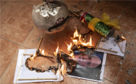 今年灑紅節(jié)(又稱霍利節(jié),也是印度傳統(tǒng)春節(jié))前夜,10名男子手持紙板雕像,聚集在印度北部城市坎普爾的一家珠寶店外。這些紙板雕像有五英