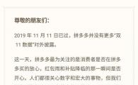 11月12日凌晨消息,拼多多發(fā)布公開信稱,2019年11月11日已過,公司并沒有更多雙11數(shù)據(jù)對外披露。 拼多多稱,人們都很關(guān)心數(shù)字和宏大