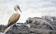 圖源網(wǎng)絡(luò) 侵刪 這是在厄瓜多爾加拉帕戈斯群島的圣克魯斯島上拍攝的藍(lán)腳鰹鳥(niǎo)和海鬣蜥。由于動(dòng)植物種類(lèi)極其豐富,加拉帕戈斯群島有活的生