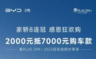 比亞迪官方宣布,比亞迪秦 PLUS DM-i 冠軍版、驅(qū)逐艦 05 冠軍版兩款車型限時(shí)開(kāi)啟2000 元抵扣 7000 元購(gòu)車款優(yōu)惠活動(dòng),活動(dòng)時(shí)間
