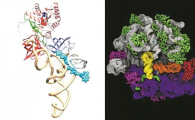 在左圖中,超級計算機模擬揭示了抗生素依維寧(淺藍(lán)色)如何與細(xì)菌核糖體中的 tRNA 分子(金色)相互作用。右圖顯示,在沒有抗生素的情況
