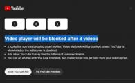 YouTube 正在進行一項新的實驗,旨在限制廣告攔截器的使用,要求用戶在觀看三個視頻后關(guān)閉廣告攔截器或者購買高級訂閱服務(wù)。