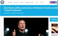 吉尼斯世界紀錄官方宣布,埃隆?馬斯克(南非)正式打破了歷史上最大的個人財富損失世界紀錄。圖片來自網(wǎng)絡 侵刪 據(jù)福布斯估計,自 2