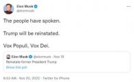 剛剛,美國(guó)著名社交媒體平臺(tái)推特已經(jīng)根據(jù)網(wǎng)民投票結(jié)果,恢復(fù)了美國(guó)前總統(tǒng)特朗普被關(guān)閉的推特賬號(hào)。圖片來自網(wǎng)絡(luò) 侵刪 在當(dāng)選美國(guó)總