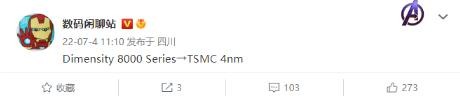 數(shù)碼博主 @數(shù)碼閑聊站 今日透露,聯(lián)發(fā)科下一代天璣 8000 系列芯片將采用臺(tái)積電 4nm 工藝打造,結(jié)合此前消息來(lái)看有望在今年年底或